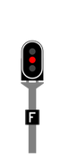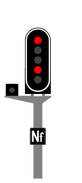 If the semaphore red light is displayed on a sign with an "Nf" plate, a small white light (called an "eyecup") must also be lit to confirm that what is displayed is indeed a semaphore, and not a square with one of the red lights burnt out.