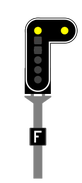 Signals are made up of panels (targets) with a black background and white edging, bearing several lights. The main indications encountered on automatic blocks are as follows: